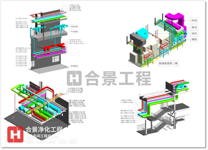 BIM 技術可應用于工程項目規(guī)劃、設計、施工、改建、運維等范圍,為產業(yè)鏈貫通、工業(yè)化建造和建筑創(chuàng)作提供技術保障。合景智慧建設(廣東)有限公司在潔凈廠房工程建設中,以BIM技術為全周期模擬,對工程全局,即潔凈環(huán)境、人流物流、暖通、電氣工程、整廠能耗、質量、安全等方面提供方案優(yōu)化和科學決策提供依據,與各專業(yè)協(xié)同工作、項目的虛擬建造和精細化管理,為工業(yè)潔凈室建設提質增效、節(jié)能環(huán)保創(chuàng)造條件,虛實結合,賦能項目,打造交鑰匙項目。