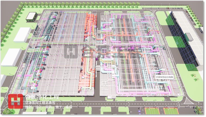 BIM 技術可應用于工程項目規(guī)劃、設計、施工、改建、運維等范圍,為產業(yè)鏈貫通、工業(yè)化建造和建筑創(chuàng)作提供技術保障。合景智慧建設(廣東)有限公司在潔凈廠房工程建設中,以BIM技術為全周期模擬,對工程全局,即潔凈環(huán)境、人流物流、暖通、電氣工程、整廠能耗、質量、安全等方面提供方案優(yōu)化和科學決策提供依據,與各專業(yè)協(xié)同工作、項目的虛擬建造和精細化管理,為工業(yè)潔凈室建設提質增效、節(jié)能環(huán)保創(chuàng)造條件,虛實結合,賦能項目,打造交鑰匙項目。